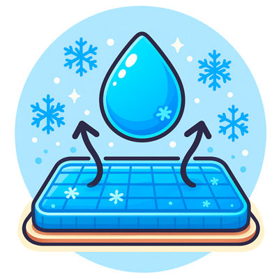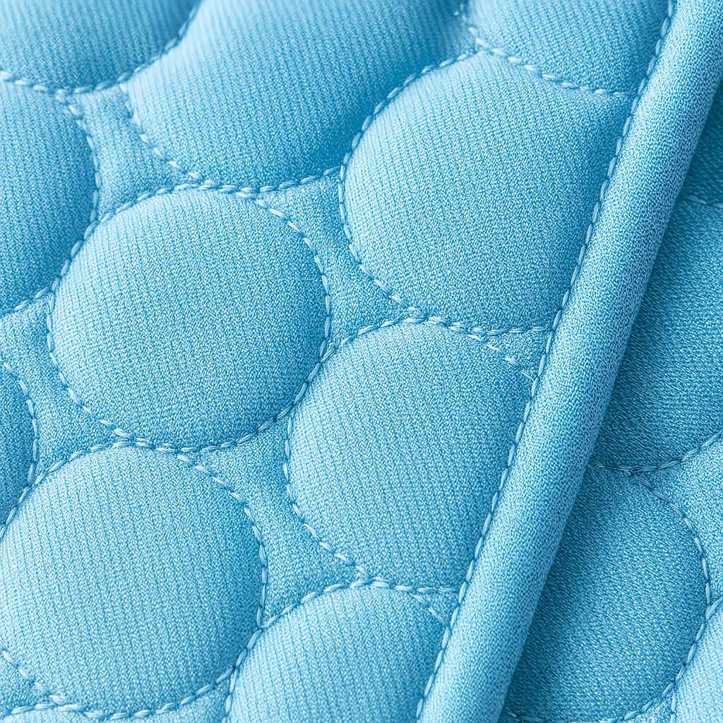 Il segreto è nel cuore del tappetino: due strati di Ice Silk Cooling Fabric ad alta capacità termica (Q-Max > 0.5), che assorbono il calore corporeo e lo disperdono in modo uniforme.